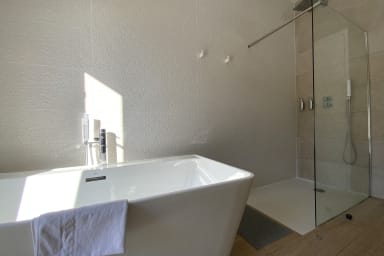 Villa Blanca also offers all modern comforts: reversible air conditioning, Wi-Fi, secure parking on the property, and a Tesla electric charging station.