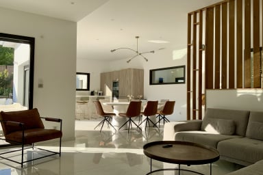 Welcome to Villa Blanca, a stunning 165m² single-story contemporary home, bathed in light and tastefully decorated. Designed to accommodate up to 8 people, it offers an ideal setting for a vacation with family or friends, combining comfort, design, and serenity. Its location is ideal and renowned for its characterful cellars and wine estates.